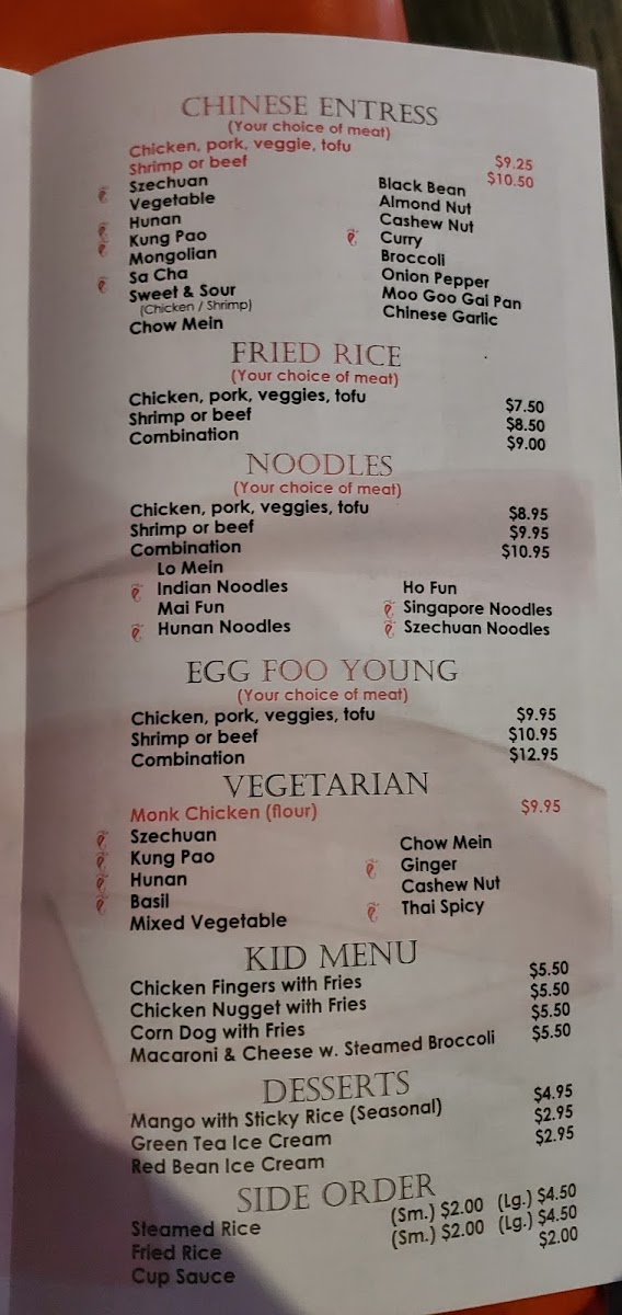 Spicy. A deliciously spicy dish, stir fried with red chilli paste along with broccoli, carrots, Napa, cabbage, bamboo, mushrooms, and, bell pepper.
