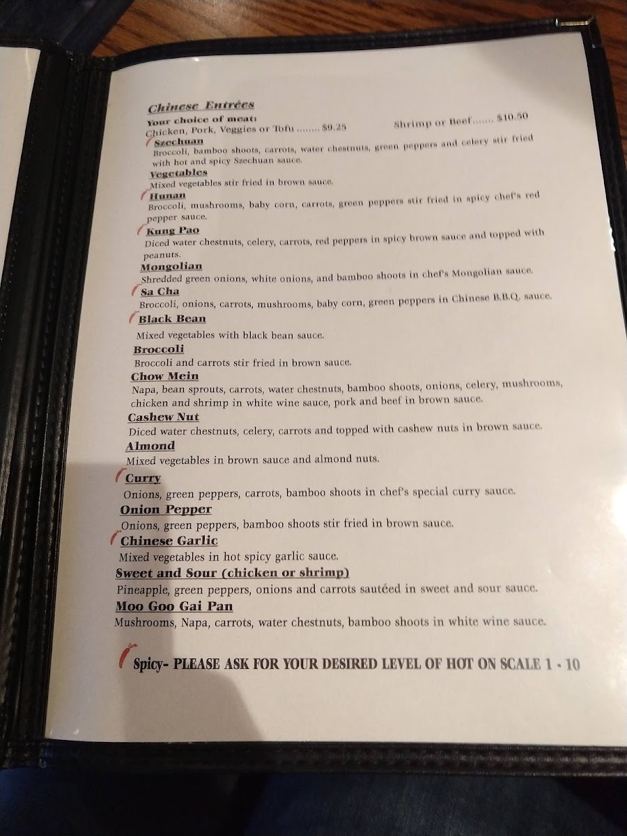 Spicy. Broccoli, mushrooms, baby corn, water chestnuts, Green Peppers, and , celery stir fried with hot and spicy Szechuan sauce.